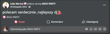 Fantastyczna oprawa wesela, muzyka była idealnie dopasowana do gustów naszych gości. Dj Patryk wykazał się ogromnym profesjonalizmem - Wesele